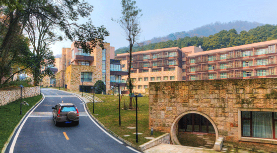 酒店占地面積約48,800㎡,總建筑面積35,000㎡。酒店內地形以坡地為主,高差較大,周邊山林植被茂盛,樹種主要以楠木,香樟為主,綠化、景觀環境優美,“進享繁華,退居森林”,為成都近郊不可多得的高品質酒店資源。酒店聘請知名建筑設計、裝修機構,采用新中式結合元素,顛覆傳統設計、按照國際五星級標準設計建設,是文化交流、文化創意、會議展覽、教育培訓、度假康養最理想的去處。
